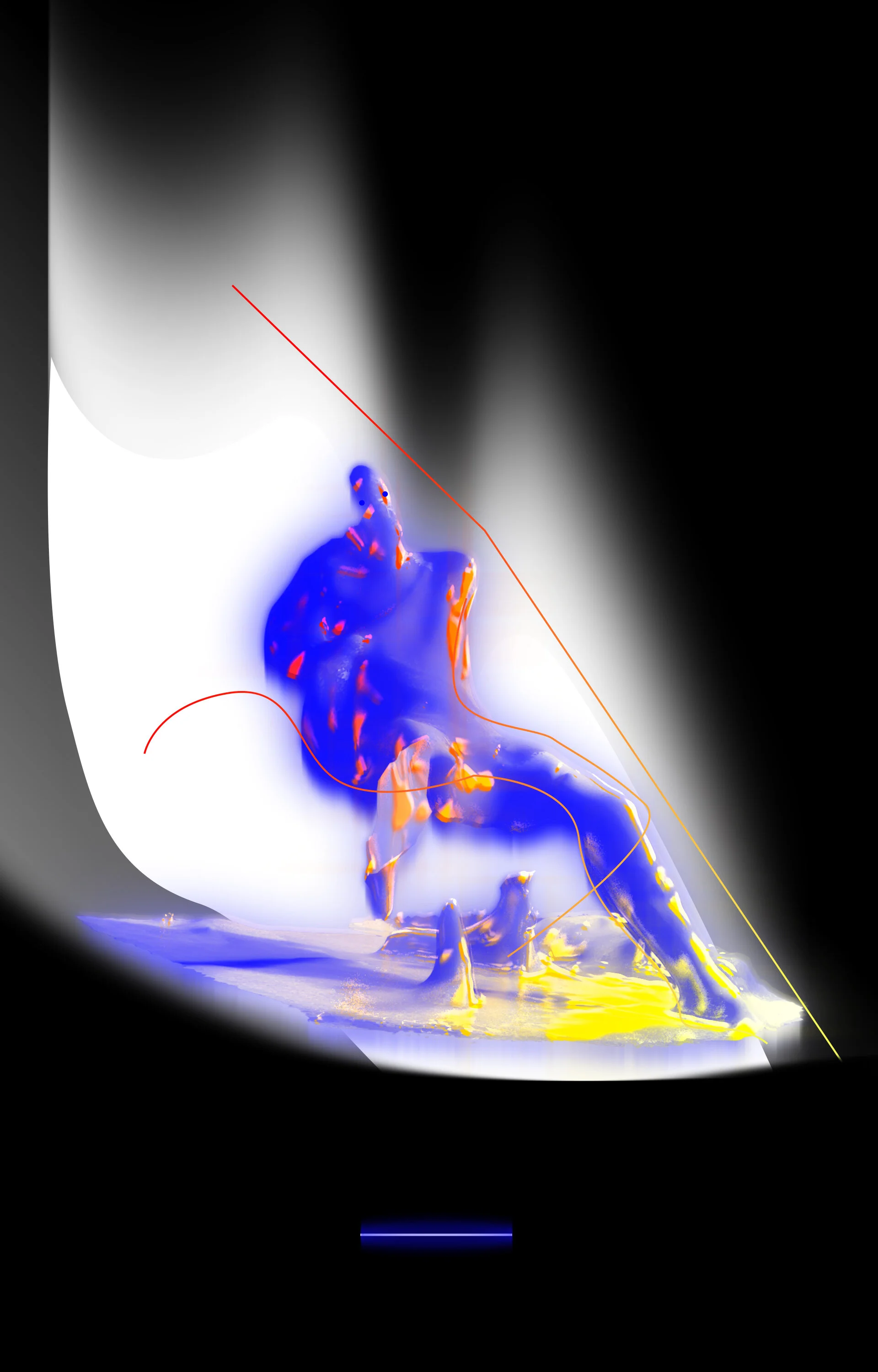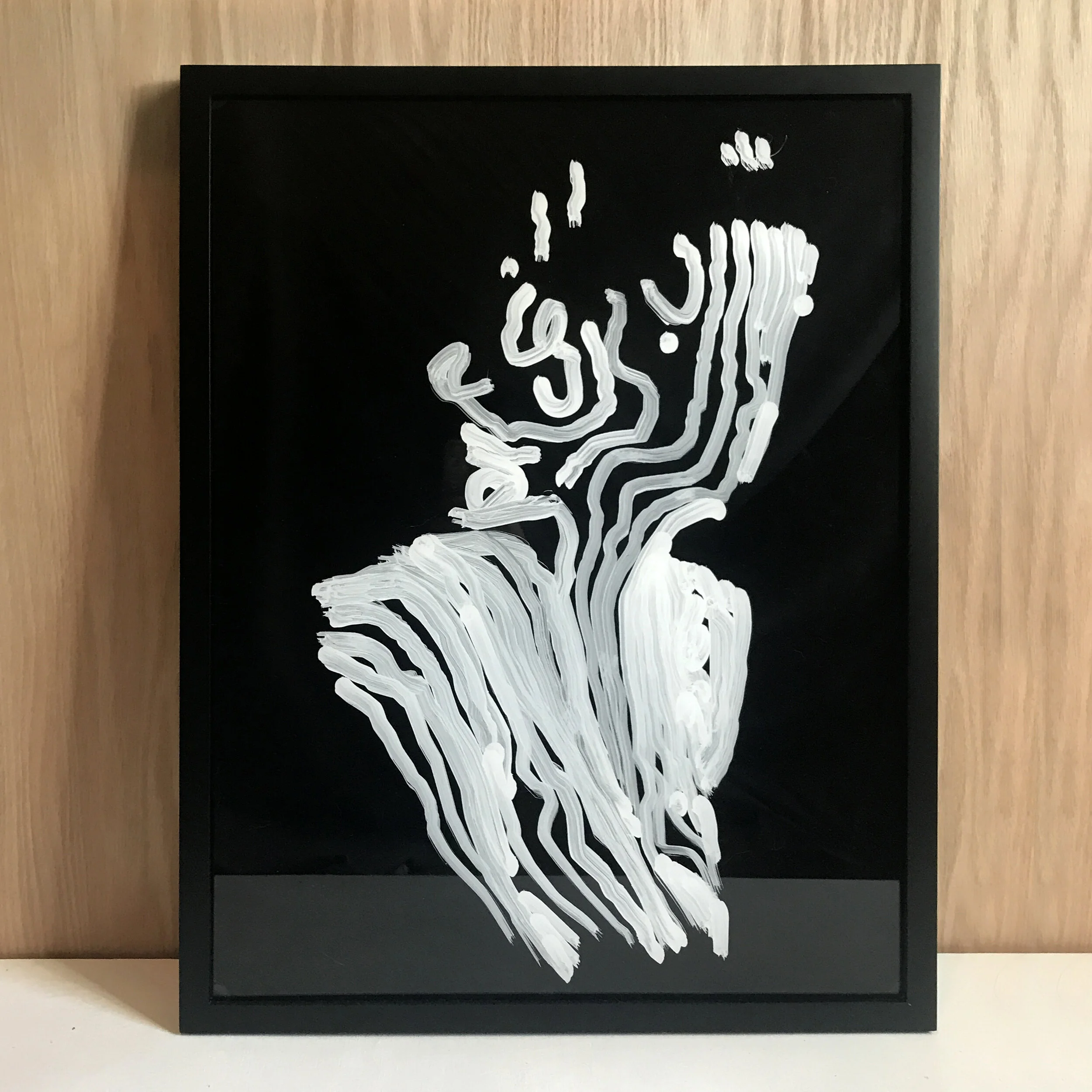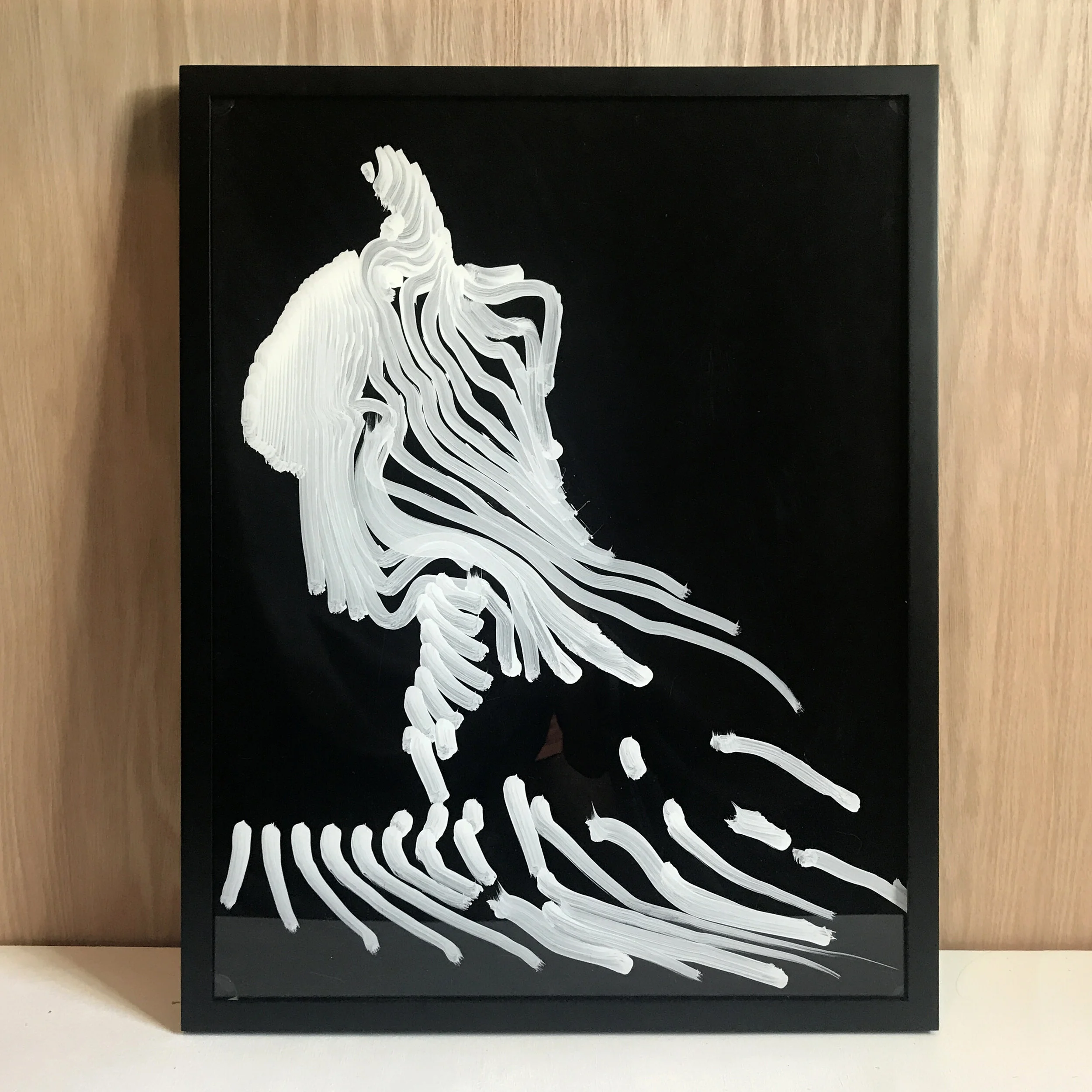 In our Static Subjection painting series, instead of re-inscribing the figures in animated motion, we bring the final act of mark making to our painting robot. Each stroke is created from the same absorbed geometry with an applied texture that make up Advice in a Well of Midnight.